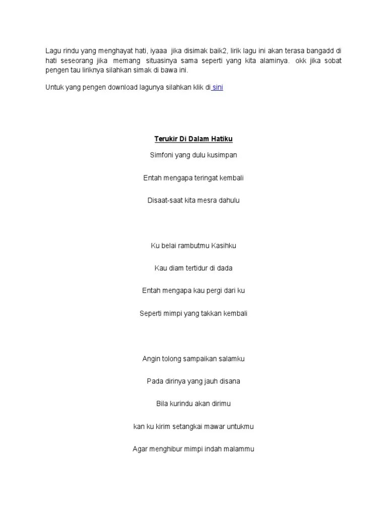 Supaya 'ku salurkan menolong yang lemah. Menjadi persembahan yang tuhan berkenan. Supaya 'ku salurkan menolong yang lemah. Tanganku yang kecil, ya tuhan, Berkatmu yang t'lah kau limpahkan. Songtekst van victor hutabarat met disini aku bawa kan je hier vinden op. 848 di sini aku bawa tuhan. 0 orang menyukai akor lagu ini. Yamuger, 1998do = e 4 ketuk(1) di sini aku bawa, . Dison adong huboan tuhan (bl no. Ku ingat firmanmu ya tuhan Pkj.147 di sini aku bawasyair dan lagu: Di sini aku bawa, tuhan, persembahan hidupku, semoga berkenan.